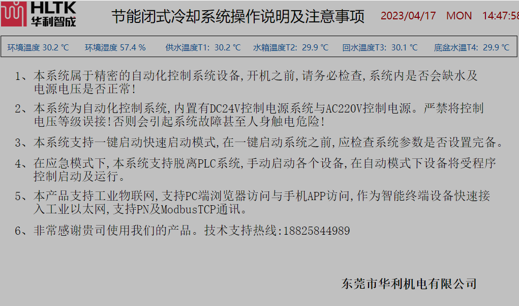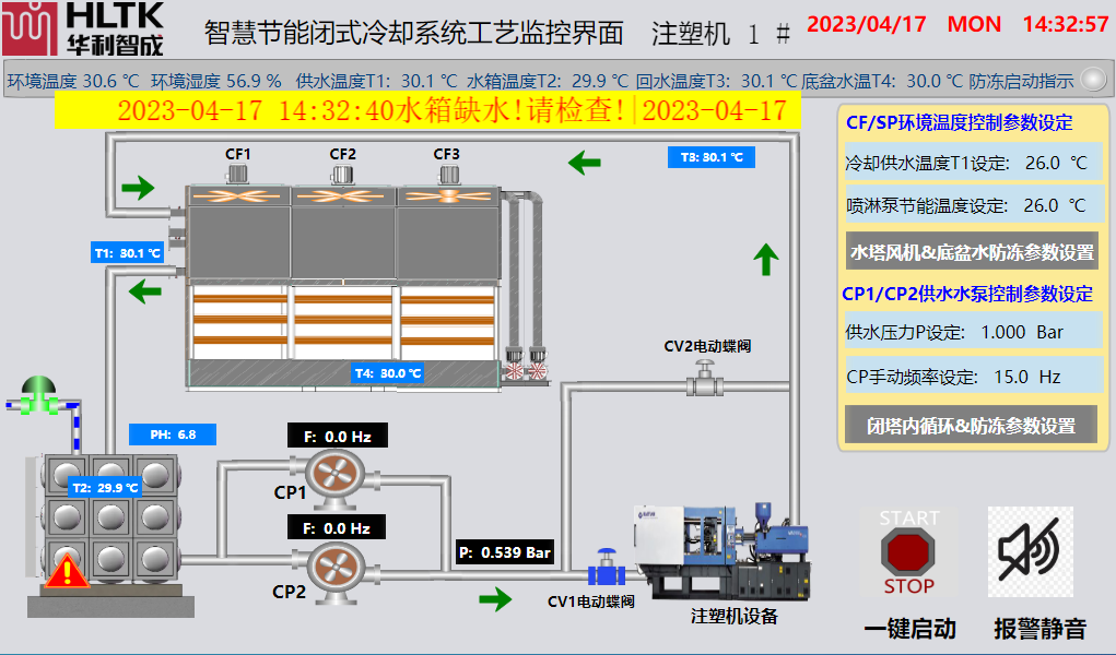 智慧節能閉式冷卻系統工藝監控界面注塑機